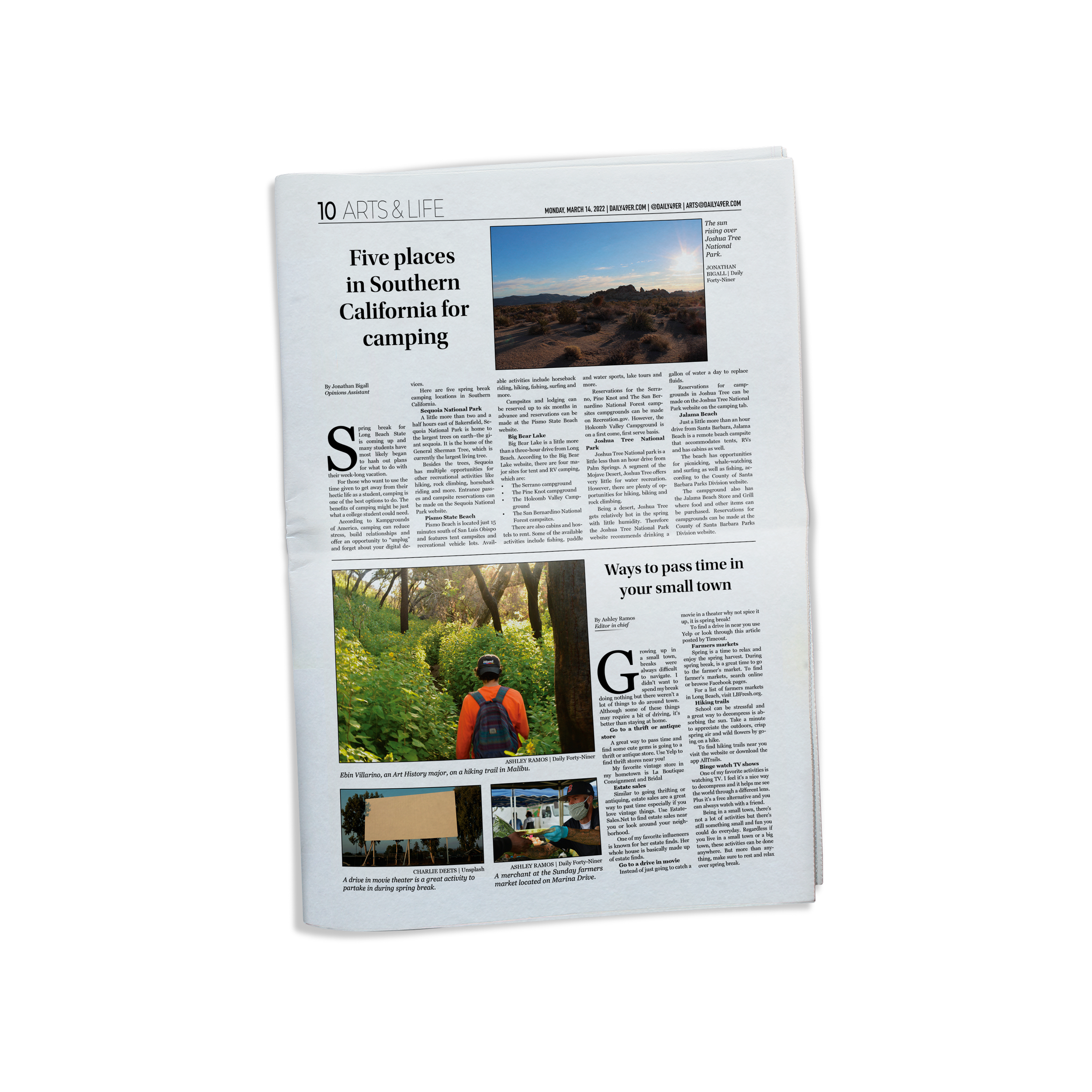 I was in charge of designing for the digital and print editions alongside my design deputies from 2021 up until I graduated in 2023. I was promoted from Design Editor to Creative Director after one semester, received awards each year from the California College Media Awards, and gave the paper a refresh during my final semester.