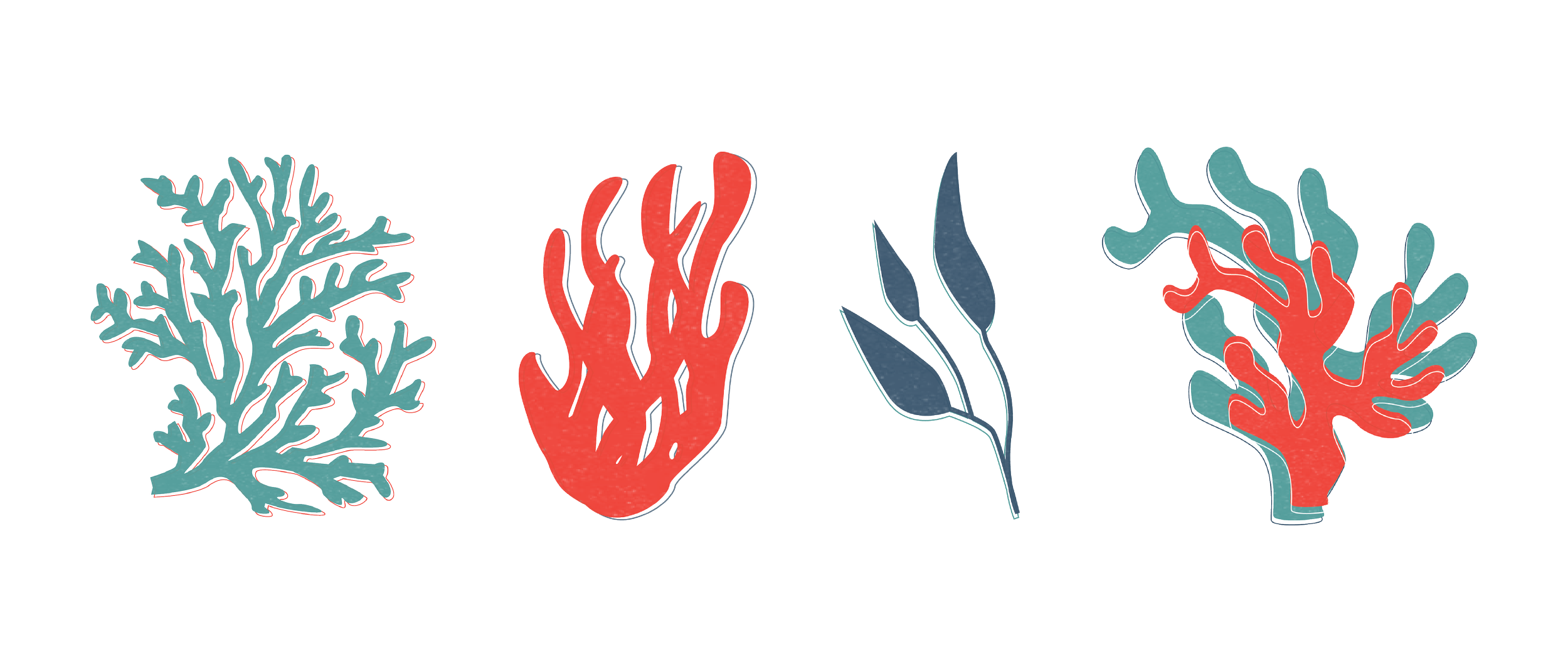 Coral reefs are some of the most diverse and colorful ecosystems on our earth. Coral comes in many different shapes, colors, and textures, which I thought was perfect to have as icons for the inside of the promotional package. I added outlines and light texture to help each icon stand out from each other and to represent the diversity of these environments.